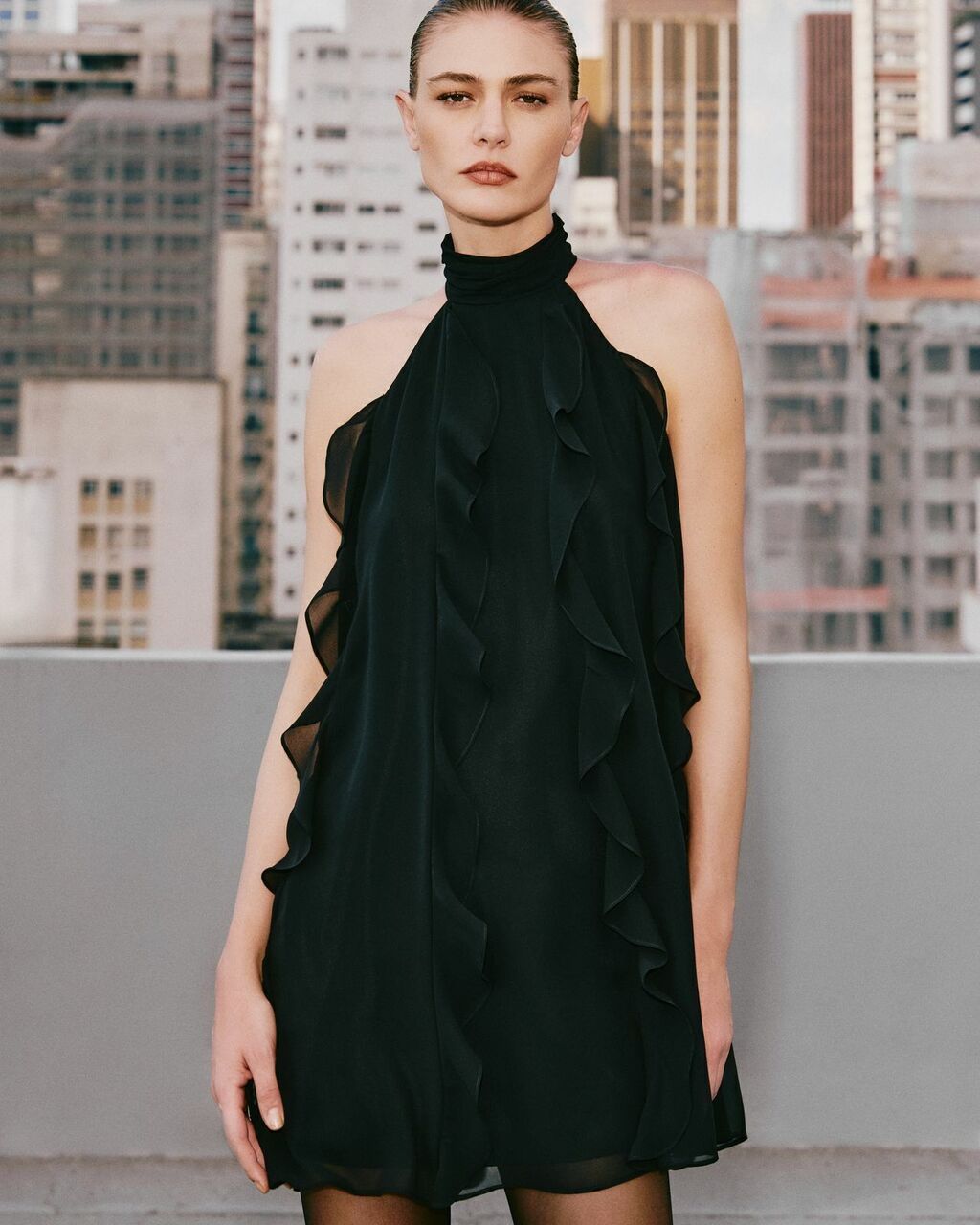 O vestido curto Siena, com babados verticais, gola alta e sem manga te deixa super charmosa! Para os dias mais quentes, aposte junto com sandália e cinto. Já nos dias mais frios, nosso vestido cai super bem com meia-calça, bota e um casaco por cima!